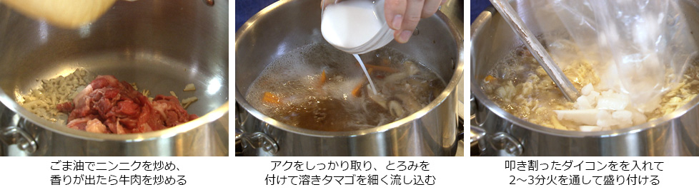 - 中火にかけたフライパンで「2.」をオタマ1杯分を円形に広げて焼く→4枚焼く。