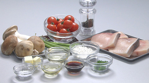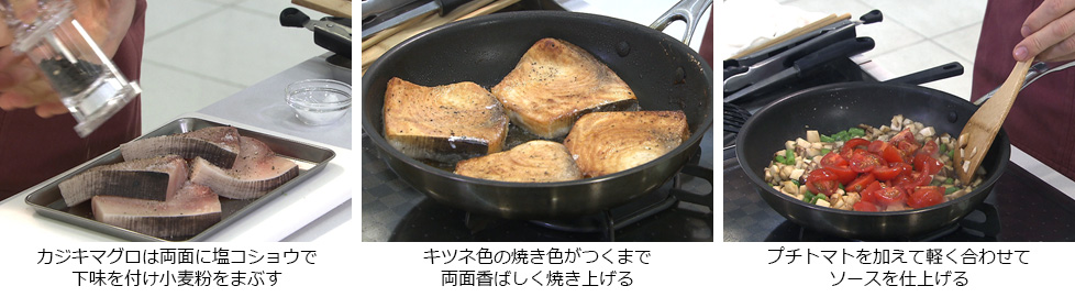 - 余分な小麦粉を落としてカジキを並べてソテーする。