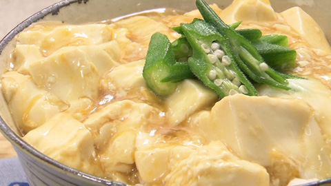- ご飯の上にかけてオクラを盛り付けて完成。