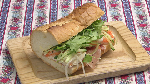 - 軽くトーストしたバタールにバターを塗って生ハムを乗せる。