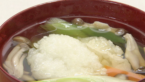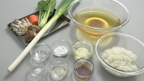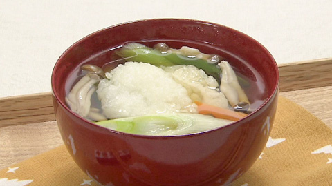 - 焼き揚げたご飯をお椀に2個入れて、出来上がった汁を注いで完成。