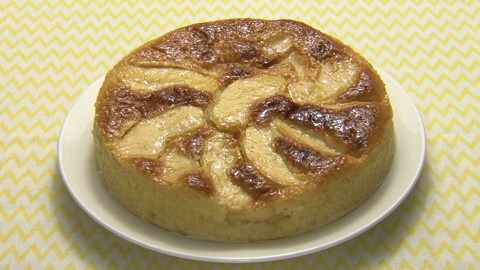 - 焼きあがったケーキを皿に盛り付け、シロップを塗れば完成。