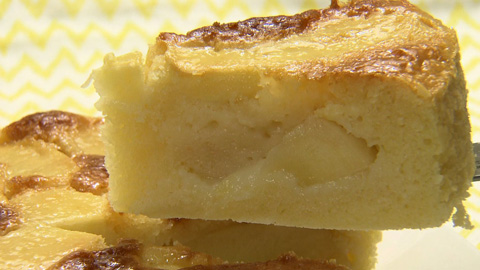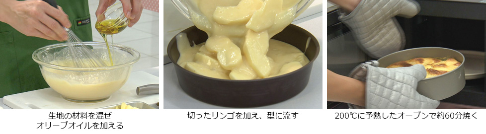 - 切ったリンゴを加え、型に流し、リンゴを均等にならす。