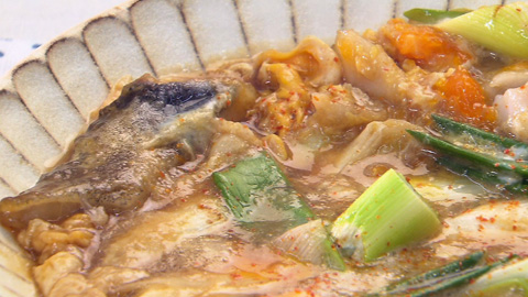 - そこに焼き目を付けた長ネギを加え、だし汁・しょう油・酒・みりん・砂糖を加えて煮立たせる。