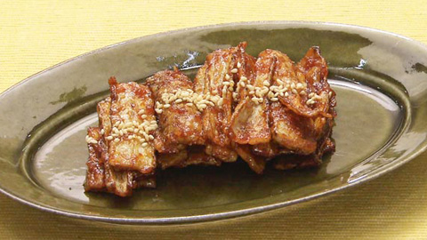 - 180℃の揚げ油でカリッとキツネ色になるまで揚げて、油切りする。