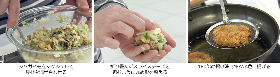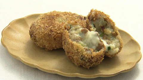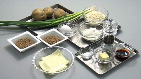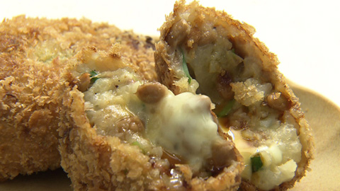 - ジャガイモをマッシュして万能ネギ・納豆・バターを加え混ぜ合わせる。