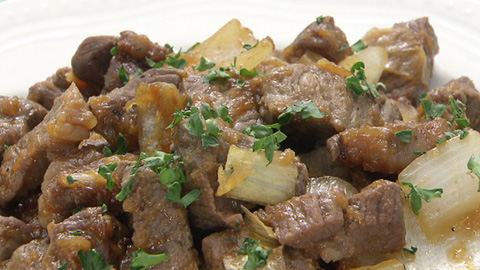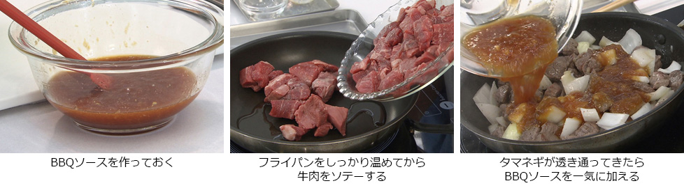 - フライパンをしっかり温めてから牛肉をソテーする。