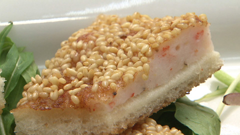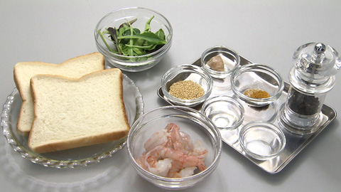 - 粘りが出たら食パンの片面に塗り、炒りゴマを散らして手でゴマを押える。