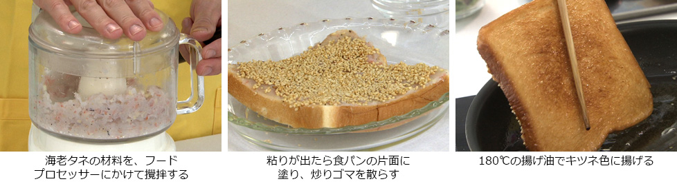 - 海老タネの材料をフードプロセッサーにかけて攪拌する。