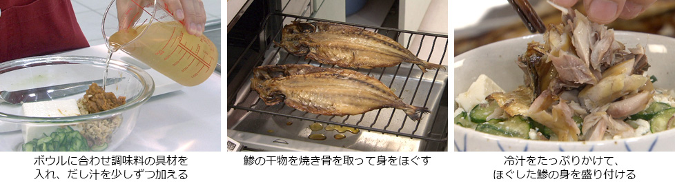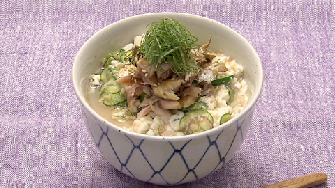 - ご飯を器に盛り、ボウルに混ぜた冷汁をたっぷりかける。