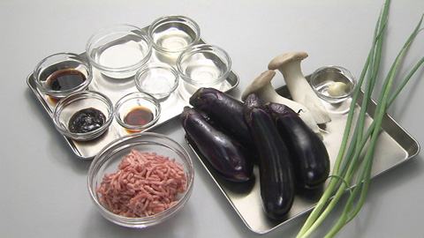 - ナス … 4本(ヘタを取り、タテに4等分して斜め2cm幅にカット)