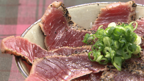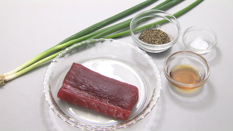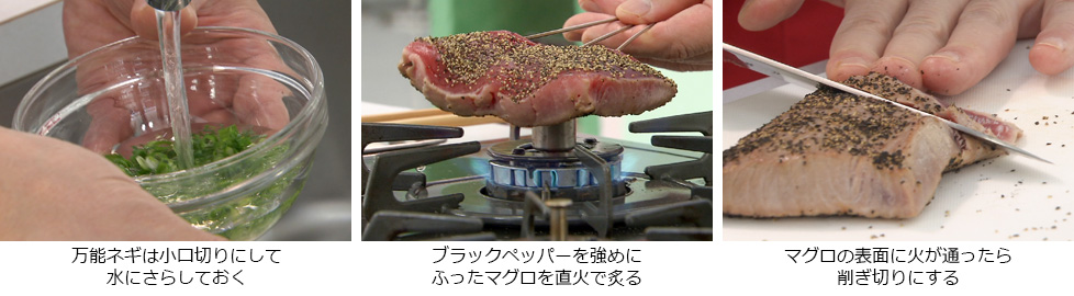 - ガスコンロのセンサーを一旦解除し、マグロを直火で炙る。