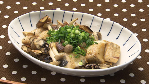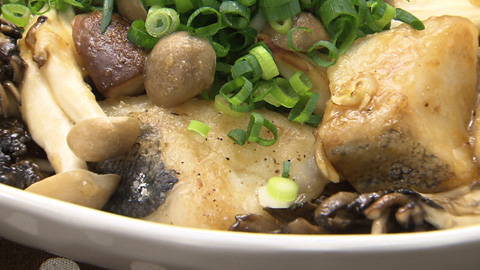 - 鱈を加えて両面に火が通ったらキノコ類を加えて炒める。