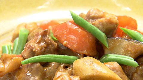 - 器にうつし、インゲンを添えて完成。