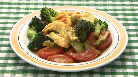- コンソメを加え、ブロッコリーを合わせ、卵も入れて火を止める。