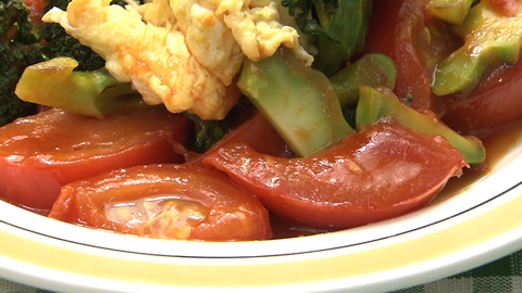 - フライパンにサラダ油をひき、フライパンが大きい場合は傾けて油を寄せたところに溶いた卵を落とし込むようにして加え、そのまままとめて、取り出しておく。