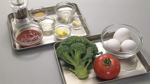 - 卵は、軽く塩コショウをしてしっかり溶く。