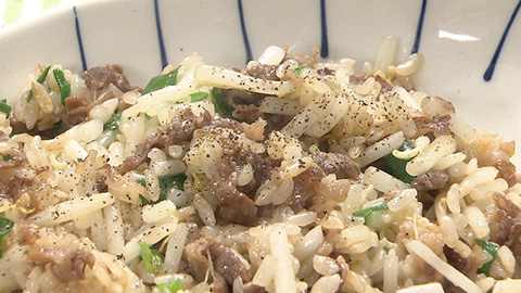 - フライパンを熱してサラダ油をひき、下味をつけた牛肉を炒めていきます。香ばしく風味を出すように、少し強めに炒めます。