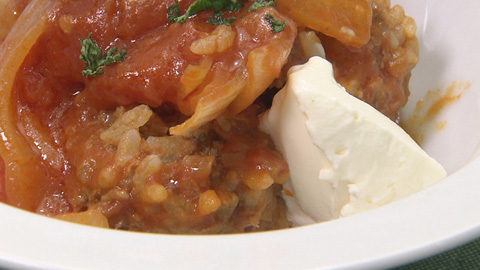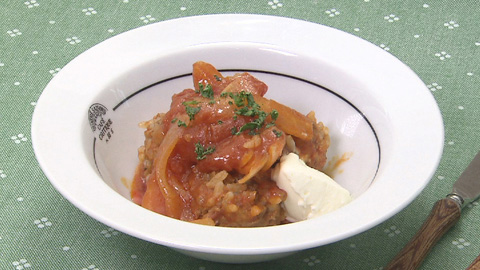 - サワークリームを添えて、パセリのみじん切りを散らし完成。