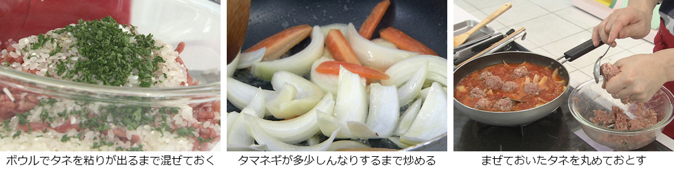 - ボウルでタネを粘りが出るまで混ぜておく。