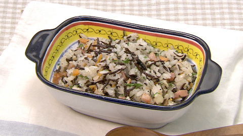 - ご飯がほぐれてきたらパセリのみじん切りを加え、塩とコショウで味付けする。