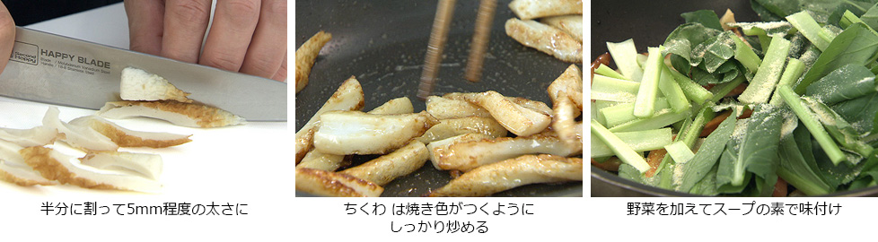 - ちくわに焼き色がつくようにしっかり炒める。