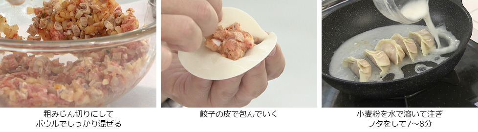 - 混ぜたものを餃子の皮で包んでいく。