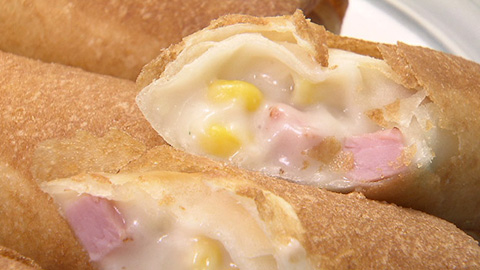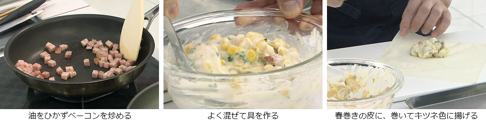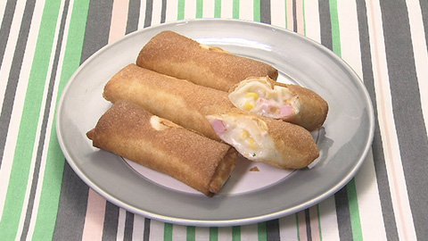 - 混ぜたものを春巻きの皮に、スプーン1杯程度ずつとり、巻いていきます。