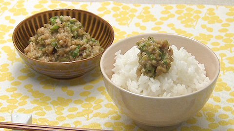 (手でちぎってバラバラに。茹でてしっかりしぼってきざむ)
