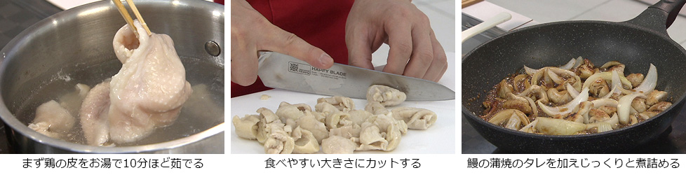 - タマネギが透き通ってきたら鰻の蒲焼のタレを加える。
