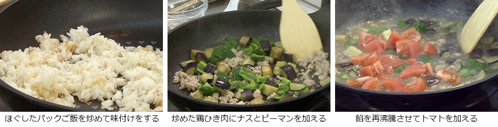 (パックごはんを使いました。加熱しないでほぐす)