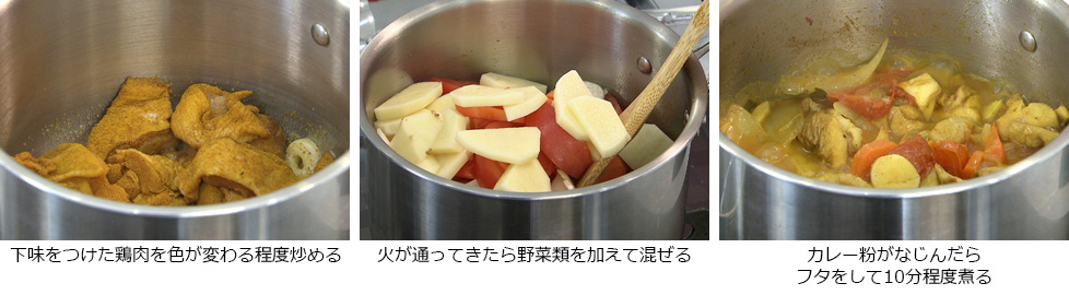 - そこに下味をつけた鶏肉を加えて色が変わる程度炒める。