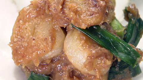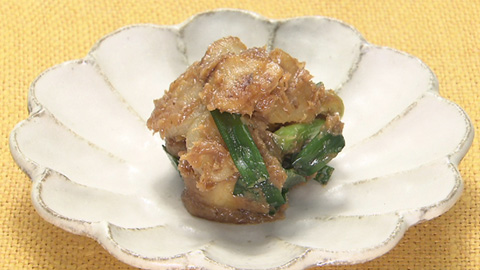 - 味噌、ハチミツ、一味唐辛子、鰹削り節を混ぜて合わせ味噌を作る。