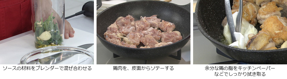 - 余分な鶏の脂をキッチンペーパーなどでしっかり拭き取る。