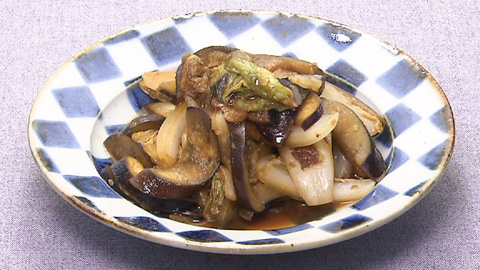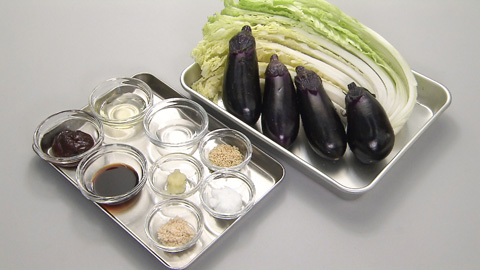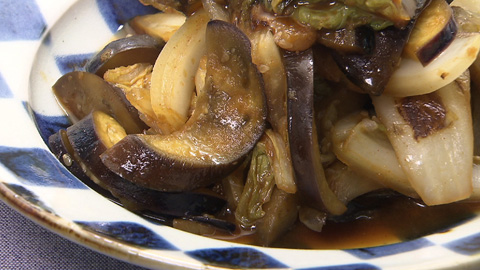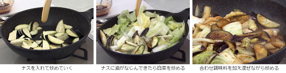 - ナスに油がなじんできたら白菜を炒める。