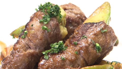 - 牛肉にまんべんなく焼き色がついたら、バターを溶かし混ぜる。