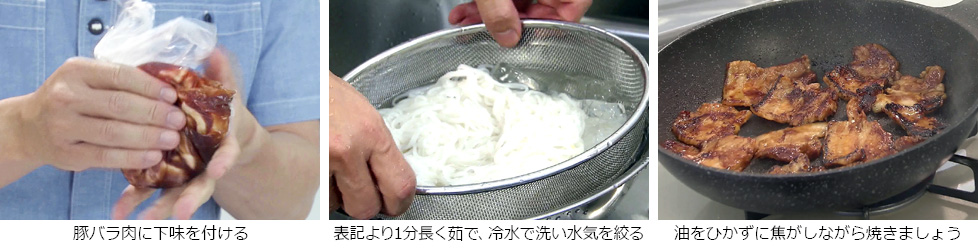 - フォーを表記より1分長く茹でた後、冷水で洗って水気をしっかり絞る。