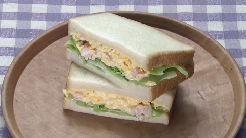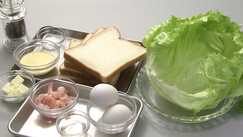 - 食パンに薄くバターを塗り、レタスを敷く。