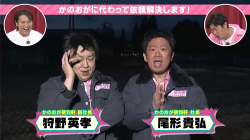 仙台市青葉区 かのおが便利軒 放送局: 仙台放送 放送日: 毎週土曜 よる6時30分よりレギュラー放送!※翌週水曜よる24時45分から再放送 尾形貴弘と狩野英孝… いろいろ好感度の低い2人が、地元愛され芸人を目指して“便利屋”をオープン! 困っている人をおたすけしたり、悩んでいる子の背中をそっと押したりと、 全宮城県民を笑顔にするため、体を張って本気で挑む「全力おたすけバラエティ」です!