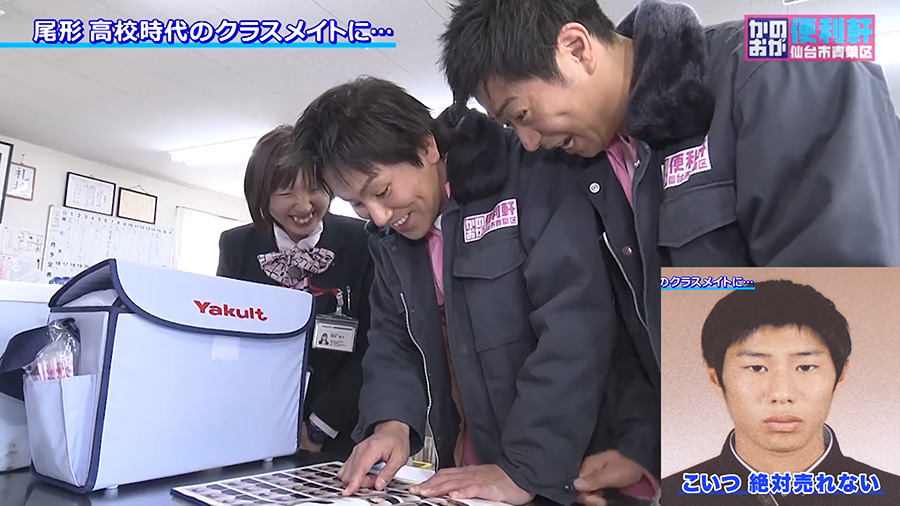 1軒目のお届け先、リーガル販売さんでは、狩野・尾形・レディさんで“誰のヤクルトを一番買いたいか対決”
