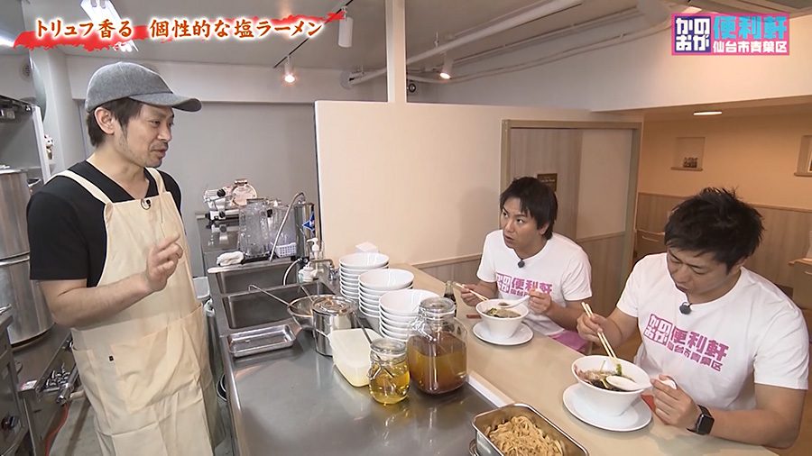 貝・魚・鶏のトリプルスープに「塩だけどガツンとくる味!」と狩野さん。