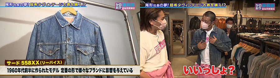 最高の1着を求め、店をウロウロする社長。ヴィンテージモノを見つけては、試着。