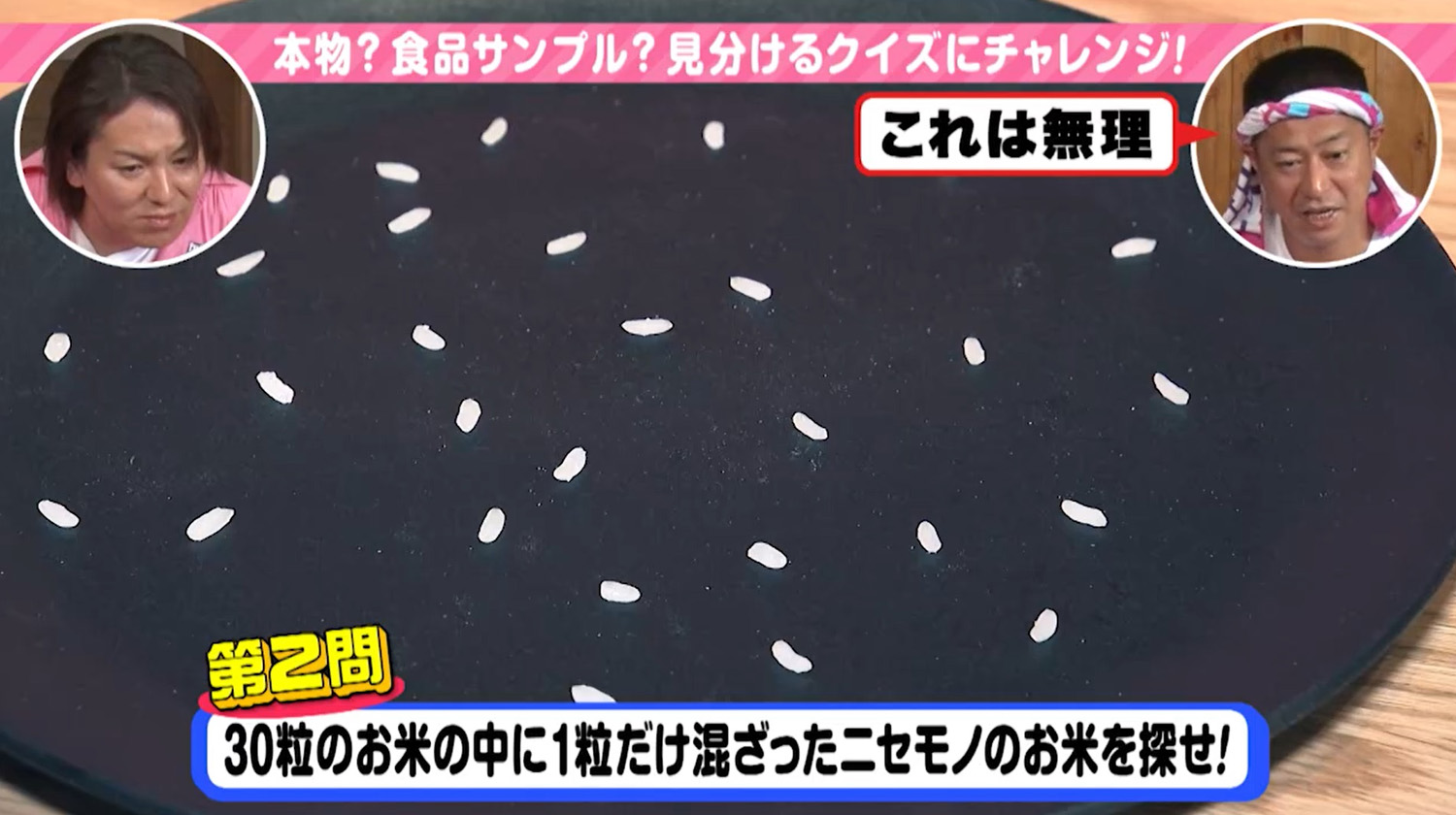 続いて「30粒のお米の中から、ニセモノを探せ」という激ムズ問題。