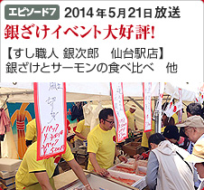 ![[エピソード7]銀ざけイベント大好評!【すし職人 銀次郎 仙台駅店】銀ざけとサーモンの食べ比べ 他](img/ep07/btn.jpg)