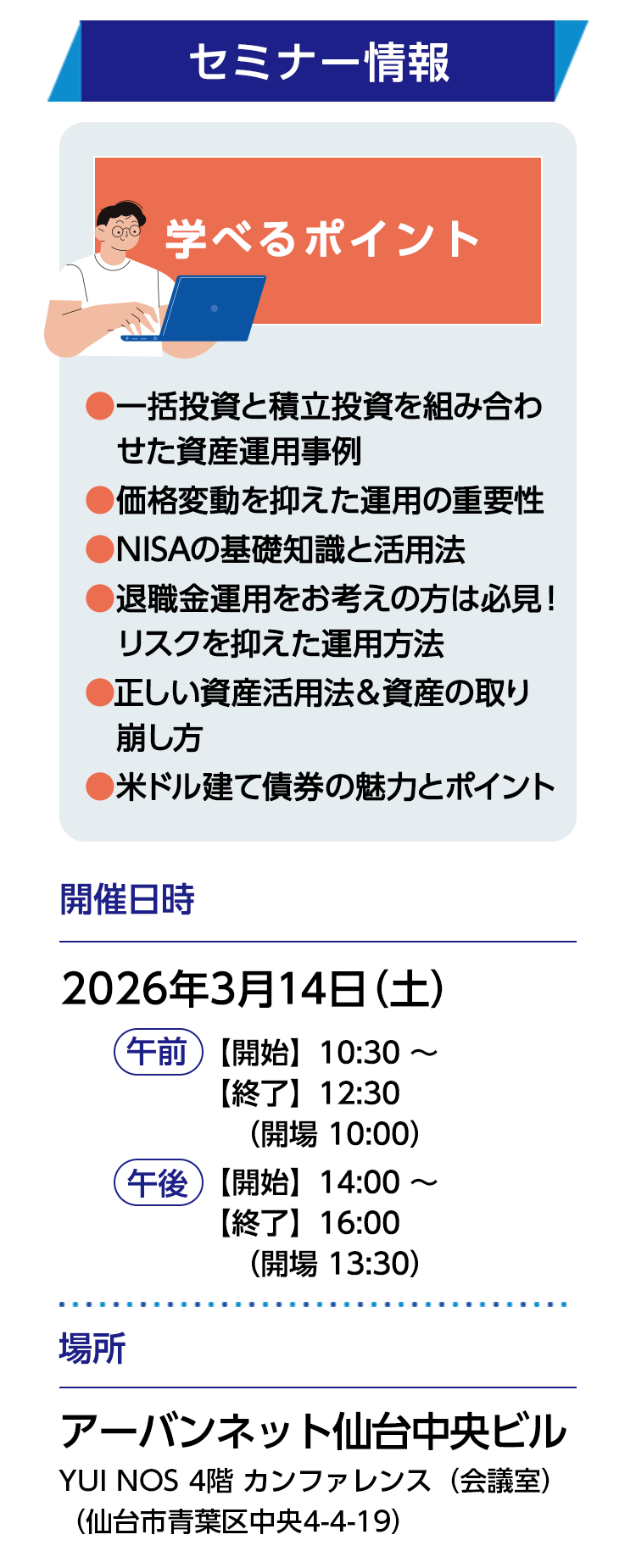 > 債券投資+投資信託を学ぶ 資産運用セミナー