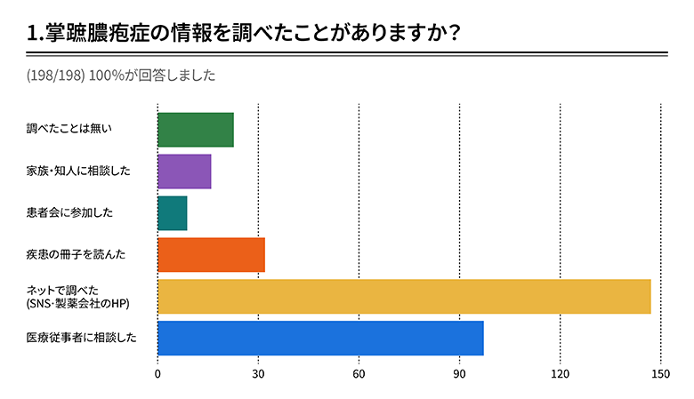掌蹠膿疱症に関する情報をどのように収集していますか?オンラインで開催した本セミナーでは、視聴者の皆さんにもリアルタイムで質問に答えていただき、ディスカッションにご参加いただきました。