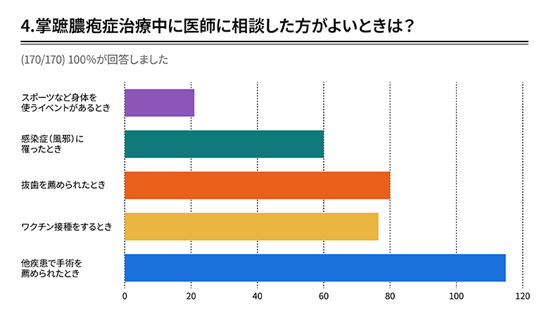 掌蹠膿疱症治療中に医師に相談した方がよいときは?